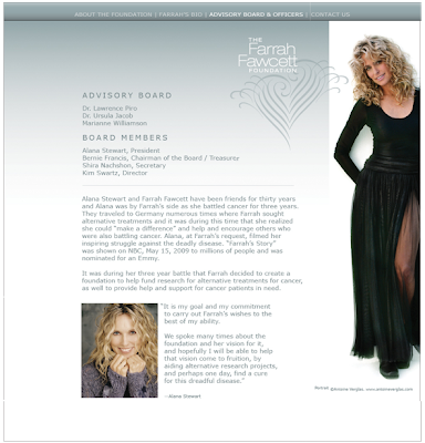 A year after the death of Farrah Fawcett, her Farrah Fawcett Foundation for alternative cancer research opens "officially" today, with a website that features photos only of the star, and oddly, one other woman in a determinedly Farrah-esque pose.